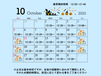 10月の開校日 ~大阪市住吉区の大依羅学習塾「彩芽」~