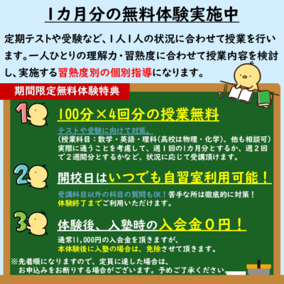 3月と4月の2か月間を無料で授業を何回でも受け放題とすることにしました!
