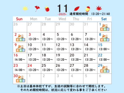 さて、今回は10月の開校日のお知らせです!